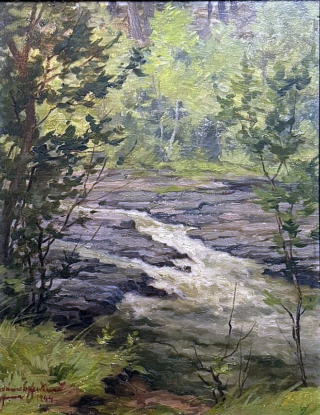 Obraz - Říčka v lese. Signován a datován vlevo dole - viz foto. Autorem je malíř Ferdinand Adámek. Olej galerijní kvality.