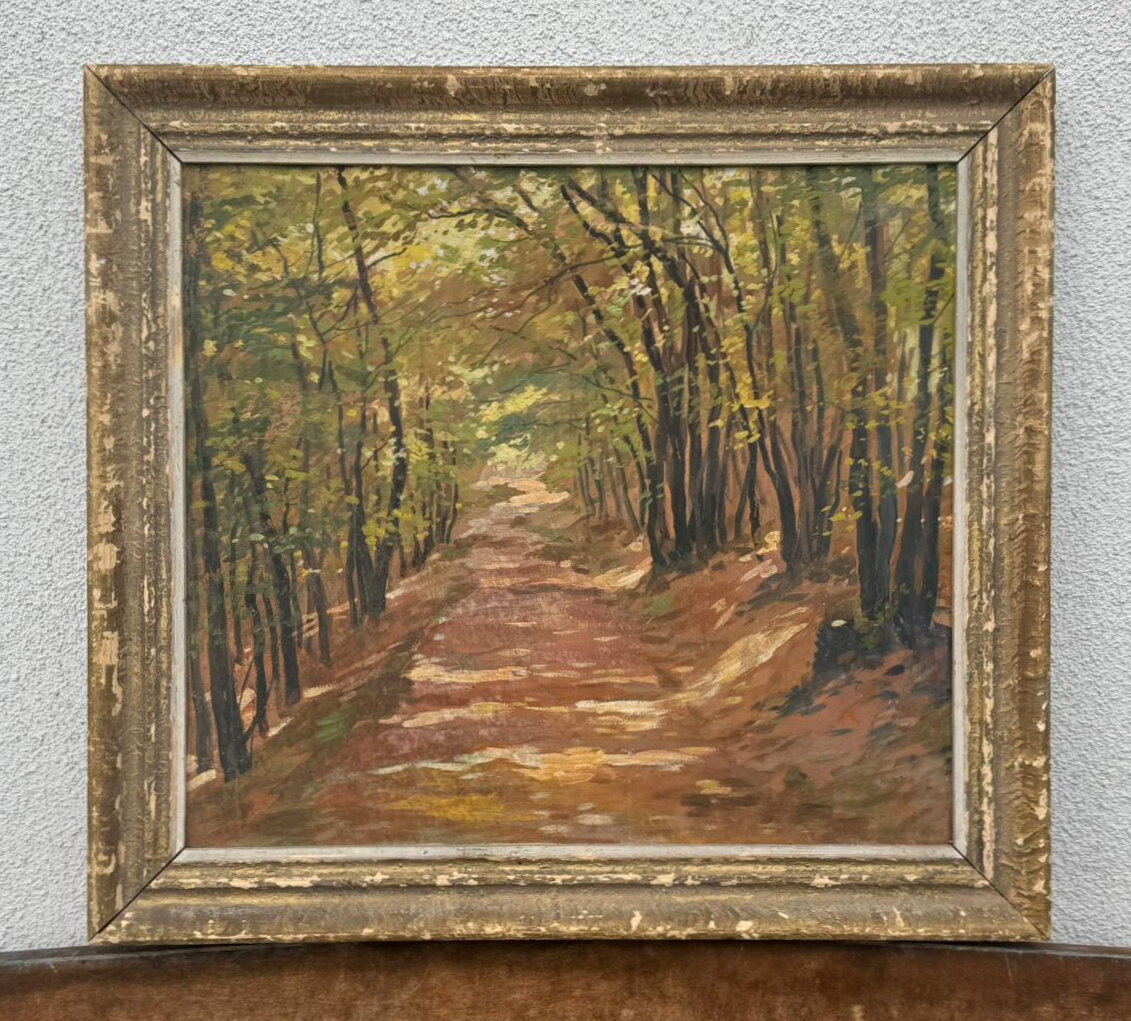 Obraz - Prosluněná lesní cesta. Signován vpravo dole - viz foto. Autorem je vyhledávaný malíř Josef Hurt.