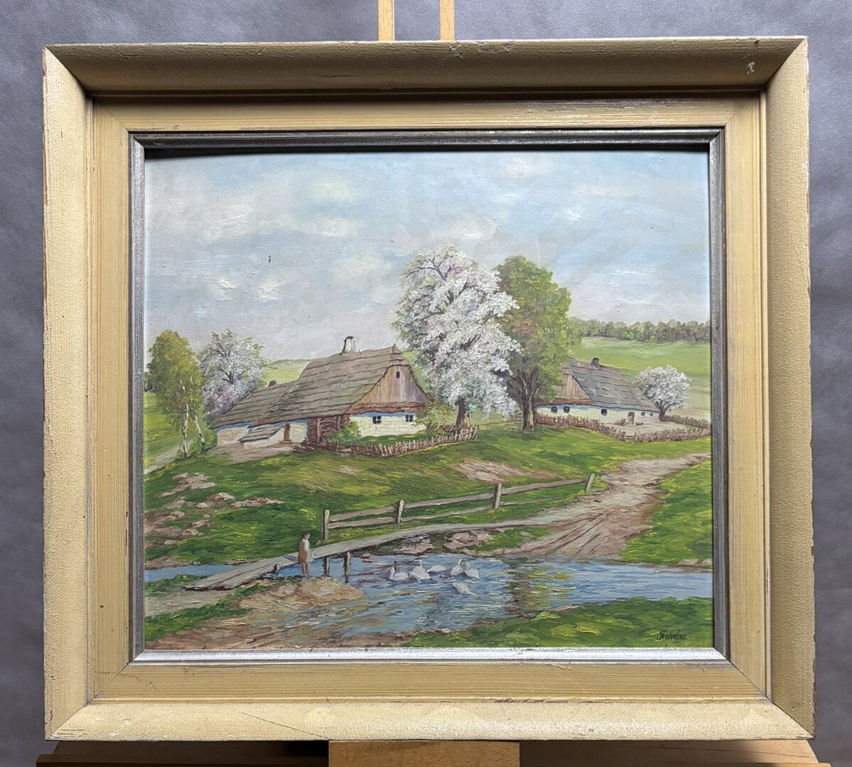Obraz - Brod za vsí. Signován vpravo dole - viz foto. Autorkou je v malířka Svobodová.