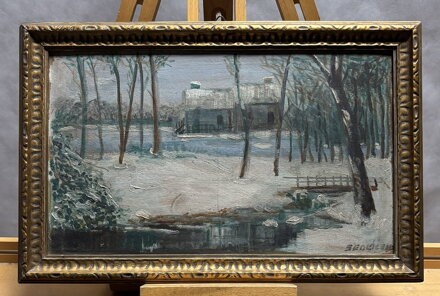 Rozměry včetně rámu cca 36 cm x 24 cm. Rám je zdobený, místy má otluky - viz foto. Pastózní olej na kartonu. Celkový stav - viz foto.