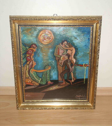 ROZMĚRY RÁMU CCA 40 X 35 CM, RÁM JE KRÁSNĚ ZDOBENÝ. OLEJ NA KARTONU. OBRAZ JE ZASKLENÝ. CELKOVÝ STAV - VIZ FOTO.