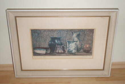 ORIGINÁLNÍ SIGNOVANÁ BAREVNÁ LITOGRAFIE - "ZÁTIŠÍ S KOULÍ". AUTOREM JE VYHLEDÁVANÝ A CENĚNÝ MALÍŘ JAROSLAV KADLEC. SIGNOVÁNA A DATOVÁNA VPRAVO DOLE - VIZ FOTO. ČÍSLOVÁNA 24/60 (TEDY VELMI NÍZKÝ NÁKLAD) A TECHNIKA VLEVO DOLE - VIZ FOTO.