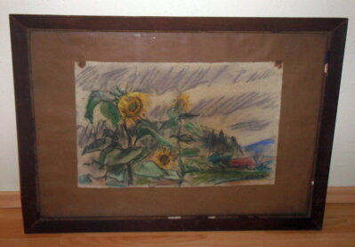 OBRAZ - SLUNEČNICE ZA VSÍ. AUTOREM JE CENĚNÝ A VYHLEDÁVANÝ MALÍŘ JOSEF HAŠEK. VELMI KVALITNÍ LÍBIVÉ DÍLO S PRVKY IMPRESIONISMU.