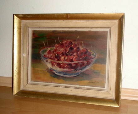 OBRAZ - "ZRALÉ TŘEŠNĚ V MÍSE". SIGNOVÁN A DATOVÁN VPRAVO DOLE - VIZ FOTO. AUTOREM JE MALÍŘ ŠAFRÁNEK. VELMI KVALITNÍ, LÍBIVÉ DÍLO.
