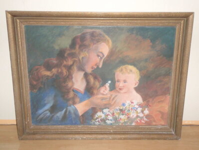 ROZMĚRY RÁMU ÚCTYHODNÝCH CCA 103 CM X 80 CM, RÁM JE ZDOBENÝ, MÍSTY MÁ OTLUKY. KOMBINOVANÁ TECHNIKA - ZŘEJMĚ OLEJ NEBO TEMPERA V KOMBINACI S PASTELEM NA KARTONU ČI PAPÍŘE. OBRAZ JE ZASKLENÝ. CELKOVÝ STAV - VIZ FOTO. NA FOTKÁCH JSOU MÍSTY ODLESKY OD BLESKU.