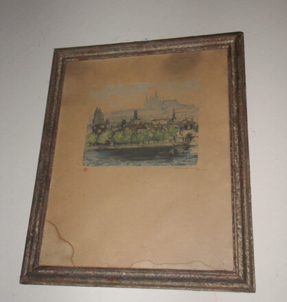RIGINÁLNÍ BAREVNÝ LEPT (AKVATINTA) - PRAHA, POHLED NA PRAŽSKÝ HRAD (PRAGENSIA). AUTOREM JE KVALITNÍ MALÍŘ A GRAFIK VLADISLAV RÖHLING. SIGNOVÁN TUŽKOU VPRAVO DOLE - VIZ FOTO. AUTORSKÉ RAZÍTKO - VLEVO DOLE - VIZ FOTO.
