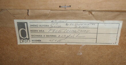 ZEZADU OBRAZU JE AUTORSKÝ ŠTÍTEK DÍLA NA KTERÉM JE UVEDEN AUTOR, JEHO ADRESA, NÁZEV DÍLA, TECHNIKA, ROZMĚR ATD. - VŠE VIZ FOTO.
