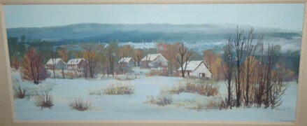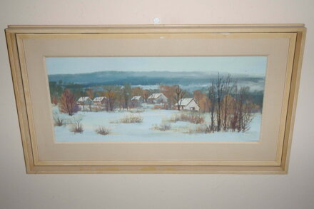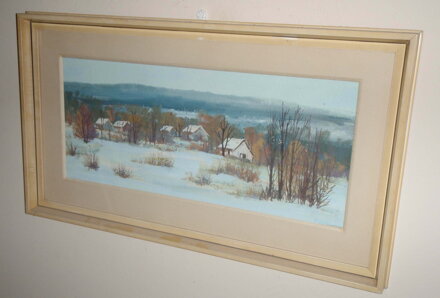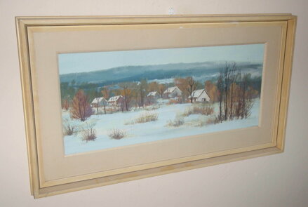 OBRAZ - CHALOUPKY V ZIMNÍ KRAJINĚ. SIGNOVÁN A DATOVÁN VPRAVO DOLE - VIZ FOTO. AUTOREM JE MALÍŘ FRANTIŠEK SADOVSKÝ. SADOVSKÝ DOKÁŽE MISTRNĚ ZACHYTIT KRÁSY PŘÍRODY NA VYSOČINĚ.