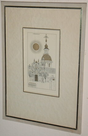 CELKOVÉ ROZMĚRY CCA 36,5 CM X 25,5 CM, ROZMĚR SAMOTNÉ GRAFIKY CCA 17 CM X 9,5 CM. PŮVODNÍ ADJUSTACE, S OHLEDEM NA STÁŘÍ JE NUTNÉ PROVĚŘIT ZEZADU UCHYCENÍ NA ZEĎ, PŘÍPADNĚ UDĚLAT NOVÉ. ZŘEJMĚ ORIGINÁLNÍ BAREVNÝ OCELORYT Z ROKU 1976. OBRAZ JE ZASKLENÝ. CELKOVÝ STAV - VIZ FOTO.