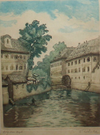 PRAHA - ČERTOVKA (PRAGENSIA). SIGNOVÁN VPRAVO DOLE - VIZ FOTO. TECHNIKA VLEVO DOLE - VIZ FOTO. AUTOREM JE MALÍŘ A GRAFIK EMIL WÄNKE.