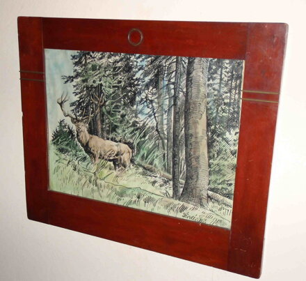 Lovecký motiv - Majestátný jelen. Autorem je vyhledávaný malíř zvěře Jiří Židlický. Signovánvpravo dole - viz foto. Povedený obraz - pěkných obrazů s loveckými motivy není na trhu mnoho.