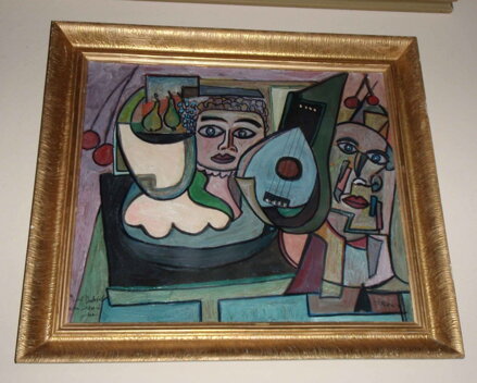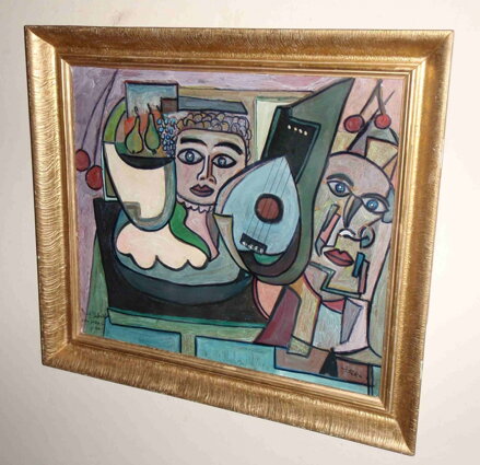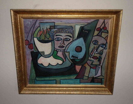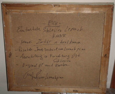 VELKÝ EXPRESIONISTICKOKUBISTICKY POJATÝ OBRAZ - ZÁTIŠÍ S HRUŠKAMA. AUTOREM JE MALÍŘ JOSEF DUBIEL VON LERACH. OBRAZ JE SIGNOVÁN VLEVO DOLE - VIZ FOTO. DÁLE TRADIČNÍ OZNAČENÍ ESLK (ENTARTETE SCHLESIEN LERACH KUNST) - VPRAVO DOLE - VIZ FOTO. ZEZADU OBRAZU JE UVEDEN NÁZEV DÍLA, TECHNIKA, RAZÍTKA, PODPIS ATD. - VŠE VIZ FOTO.