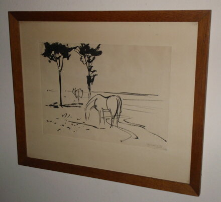 Obraz - Kůň na pastvě. Signován a datován vpravo dole - viz foto. Autorem je známý a vyhledávaný malíř a grafik Vojtěch Sedláček.
