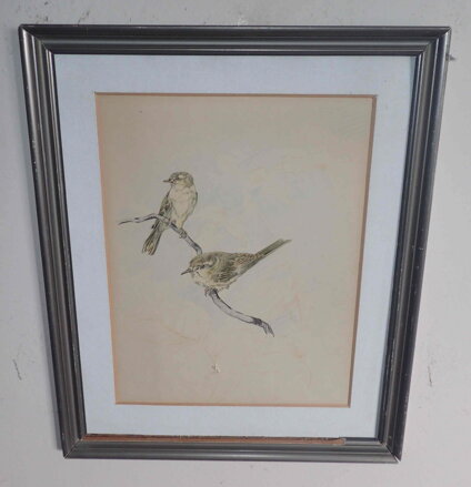 Rozměry včetně rámu cca 40 cm x 32 cm, rám je úzký, místy má otluky. Obraz je zasklený. Tužka nebo pastel na papíře či kartonu. Celkový stav - viz foto.