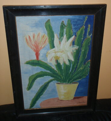 VELKÝ OBRAZ - KVETOUCÍ KAKTUS. AUTOREM JE MALÍŘ I. SYŘIŠTĚ. OBRAZ JE SIGNOVÁN VPRAVO DOLE - VIZ. FOTO.