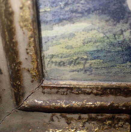 Obrázek - Stromy u řeky. Signován a datován vlevo dole - viz foto.