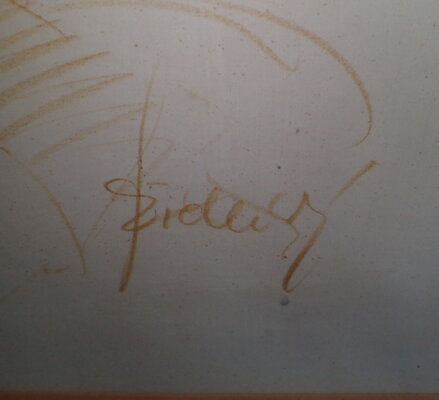 Rozměry včetně rámu cca 42 cm x 37 cm, rám je úzký, místy má otluky. Obraz je zasklený. Pastel na papíře. Celkový stav - viz foto.