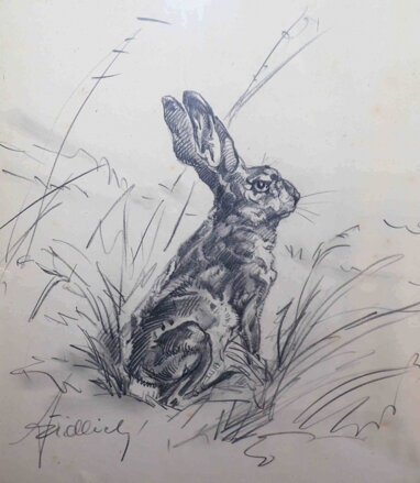 Obraz - Zajíc v trávě. Signován vlevo dole - viz foto. Autorem je vyhledávaný malíř zvěře Jiří Židlický.Povedený obraz - pěkných obrazů s loveckými motivy není na trhu mnoho.