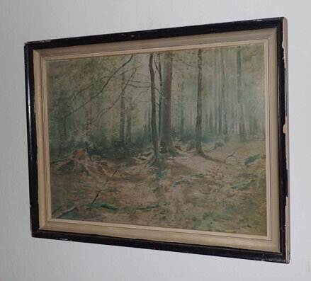 Obraz - Vnitřek lesa. Reprodukce od známého malíře Juliuse Mařáka. Signován a datován vlevo dole - viz foto.