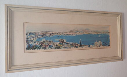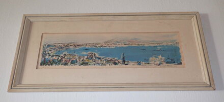 Rozměry včetně rámu cca 75 cm x 35 cm, rám je zdobený, místy má otluky. Originální signovaná litografie na papíře. Celkový stav - viz foto.
