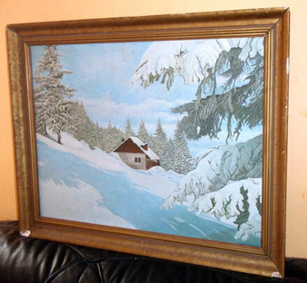 CHALOUPKA ZAVÁTÁ SNĚHEM. AUTOREM JE MALÍŘ MARŠÁLEK. SIGNOVÁN VPRAVO DOLE - VIZ FOTO. AUTOR MÁ ZAJÍMAVÝ STYL MALBY, OBRAZ MÁ KLIDNOU, POHODOVOU ATMOSFÉRU.