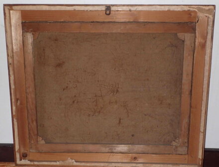 Rozměry včetně rámu úctyhodných cca 82 cm x 69 cm. Rám je původní, dřevěný, místy má otluky - viz foto. Olej na plátně. S ohledem na stáří má obraz místy vypraskanou malbu a jedno drobné poškození - viz foto. Celkový stav - viz foto.