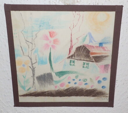 Celkové rozměry cca 21 cm x 21 cm. Obraz je nově adjustován a zasklen. Pastel na papíře. Celkový stav - viz foto.