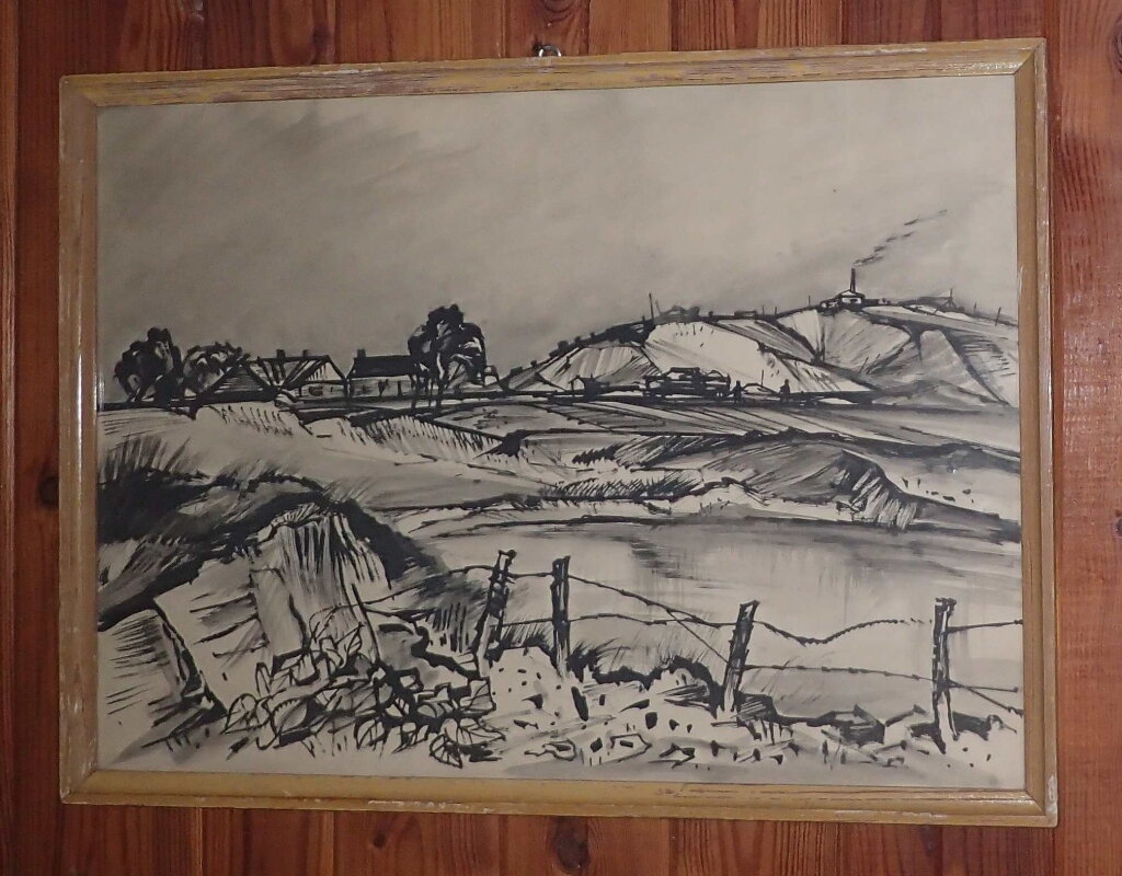 Obraz - Lom Kaolínka u Podbořan. Autorem je malíř Karel Kareš Slabý. Expresivní osobitý styl.