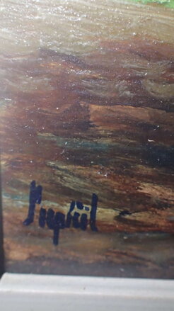 Rozměry včetně rámu cca 48 cm x 33 cm. Rám je mohutný, zdobený, místy má otluky. Olej na desce. Celkový stav - viz foto.