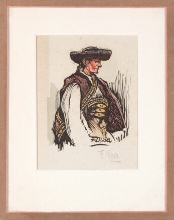 Kolorovaný linoryt na papíře. Rozměry samotného linorytu jsou cca 17 cm x 13 cm. Obraz je zasklený. Celkový stav - viz foto.