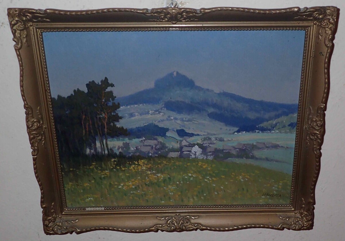 Obraz - Louka za vesničkou. Signován vpravo dole - viz foto. Autorem je malíř Karel Havlata. Na první pohled je vidět, že Karel Havlata si dal na tomto obraze velmi záležet, jedná se o velmi kvalitní dílo.