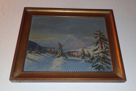 Obraz - Krkonoše Pohled na Sněžku. Autorem je malíř Žabokrtský. Signován a datován vpravo dole - viz foto.