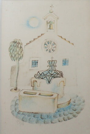 Originální barevná číslovaná litografie - Praha Středomořský kostelík (Pragensia). Autorem je malíř, grafik, restaurátor Jiří Hanžlík. Číslován 13/50 vlevo dole - viz foto.