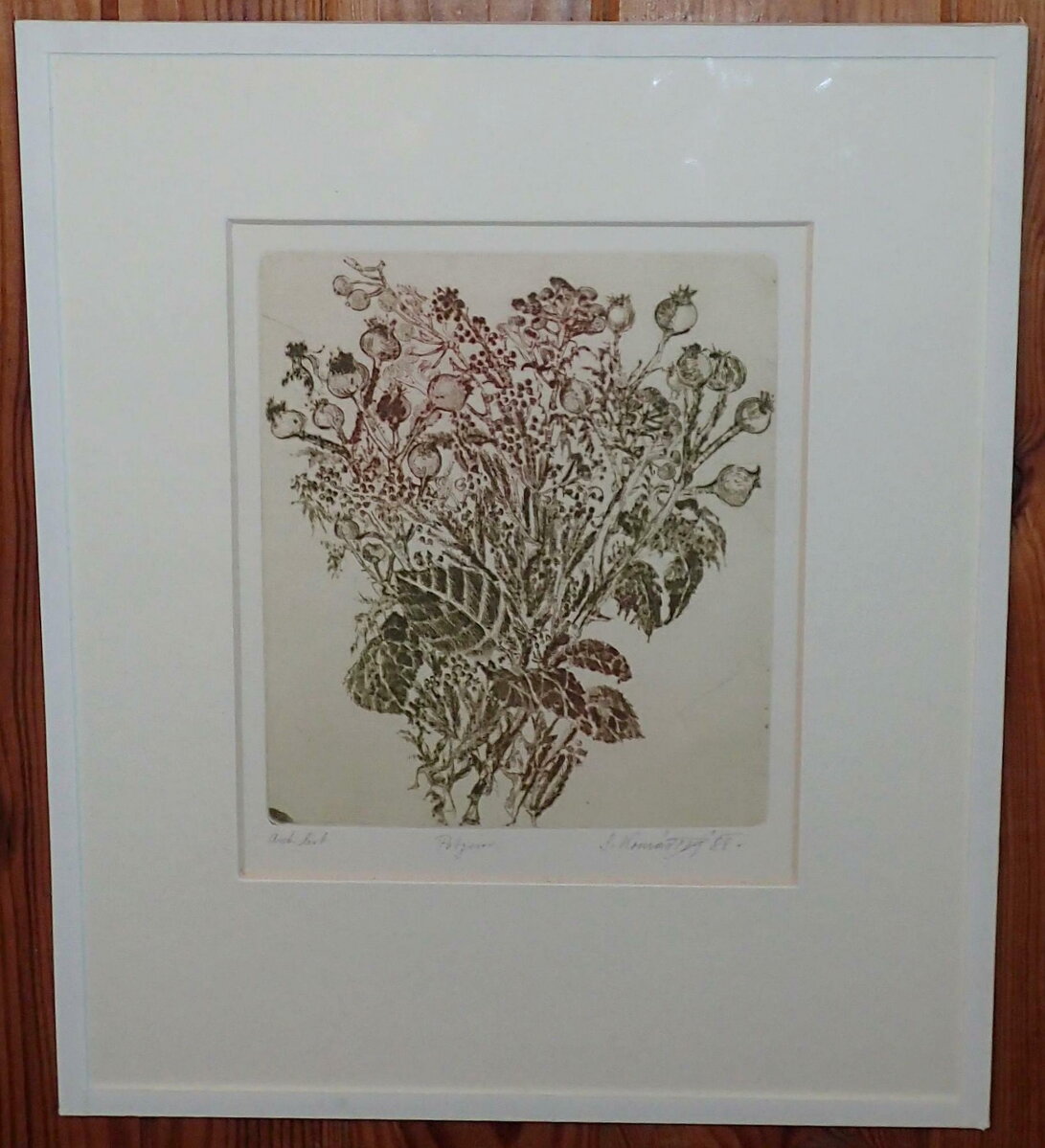 Celkové rozměry cca 39 cm x 33 cm. Suchá jehla na papíře či kartonu. Obraz je zasklený. Celkový stav - viz foto.
