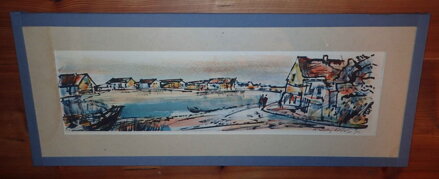 Celkové rozměry cca 71 cm x 29 cm. Originální barevná signovaná litografie na papíře. Obraz je zasklený. Celkový stav - viz foto.