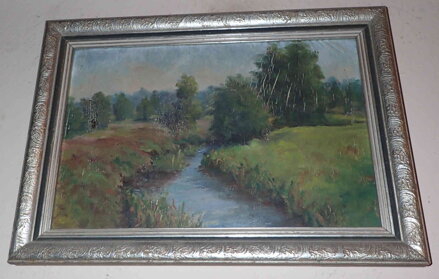 Rozměry včetně rámu cca 43 cm x 31 cm. Rám je zdobený, místy má otluky. Olej na kartonu. Vypraskaná malba na obraze - viz foto. Celkový stav - viz foto.