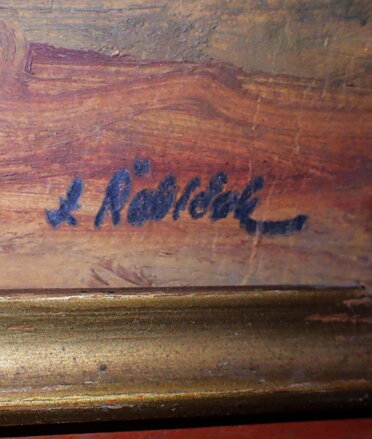 Obraz - Roubenky v krajině. Autorem je pravděpodobně malíř Ladislav Řebíček. Signován vpravo dole - viz foto. Vlevo dole je napsáno Messel Koppe či Kome - viz foto, může se tedy jednat o známou archeologickou oblast v Německu.
