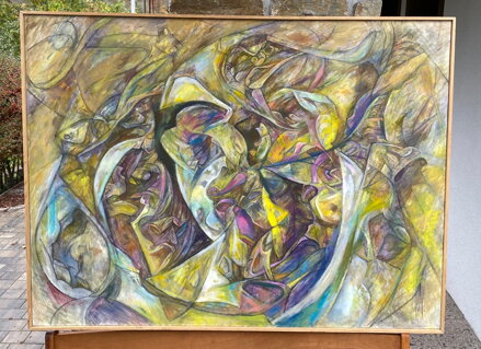 Celkové rozměry včetně rámu úctyhodných cca 120 cm x 90 cm. Olej na plátně. Rám je dřevěný. Celkový stav - viz foto.