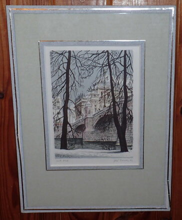 Originální barevná signovaná - Praha Národní divadlo nad mostem Legií (Pragensia). Signovaná a datovaná vpravo dole - viz foto. Technika vlevo dole - viz foto. Autorem je malíř a grafik Jiří Bouda.