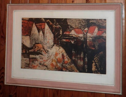 Rozměry včetně rámu cca 68 cm x 48 cm. Rám je zdobený, místy má otluky - viz foto. Originální signovaná barevná litografie na papíře. Obraz je zasklený. Celkový stav - viz foto.