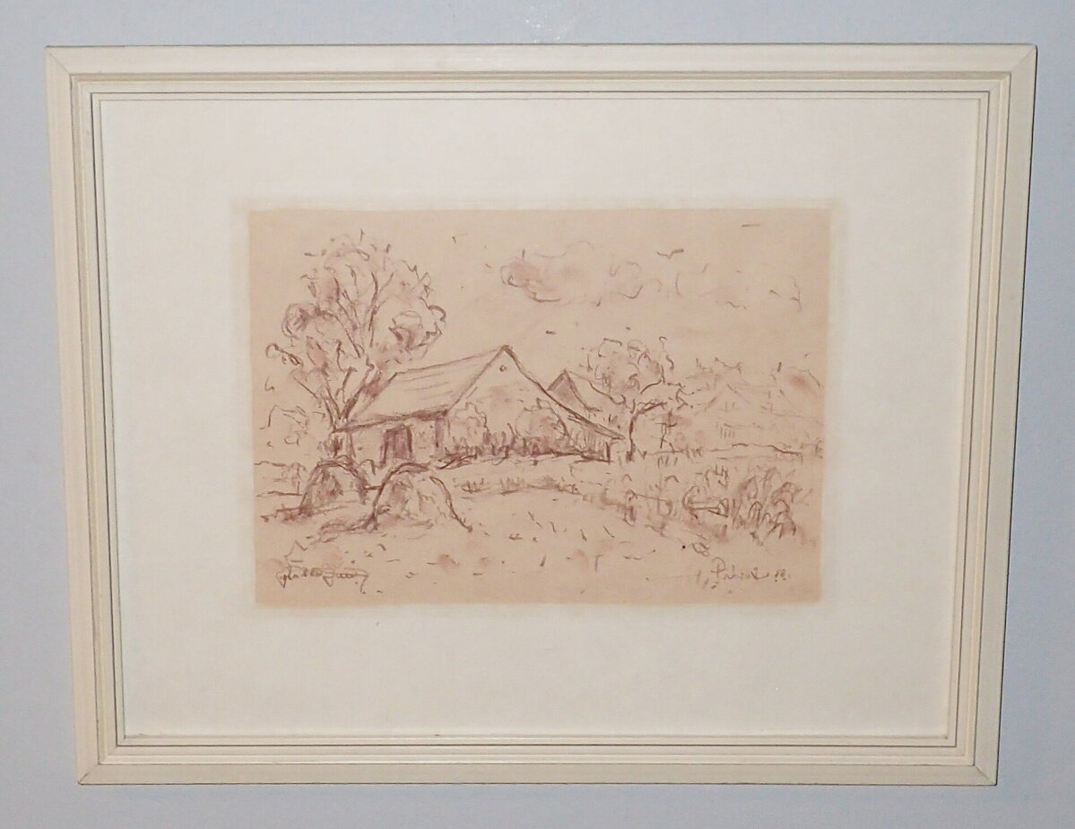Rozměry včetně rámu cca 46 cm x 37 cm. Rám je zdobený, místy má otluky. Rudka na papíře. Obraz je zasklený. Celkový stav - viz foto.