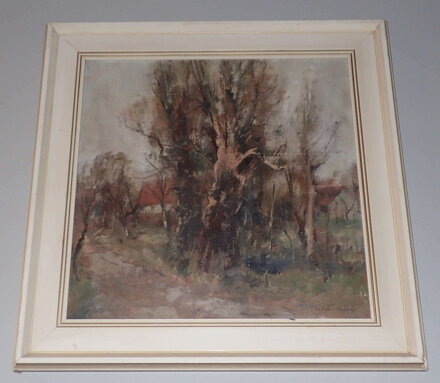 Obraz - Stromy za vesnicí. Autorem je malíř Vondráček Josef. Signován vpravo dole - viz foto.