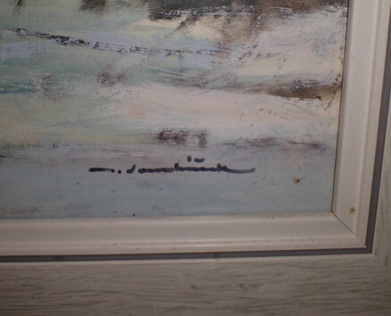Obraz - Zima u vodní nádrže Rozkoš. Autorem je malíř Vondráček Josef. Signován vpravo dole - viz foto.