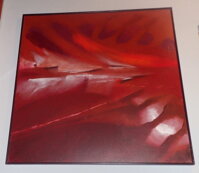 Rozměry včetně rámu úctyhodných cca 96 cm x 96 cm, rám je úzký, místy má otluky. Akryl na plátně. Celkový stav - viz foto.