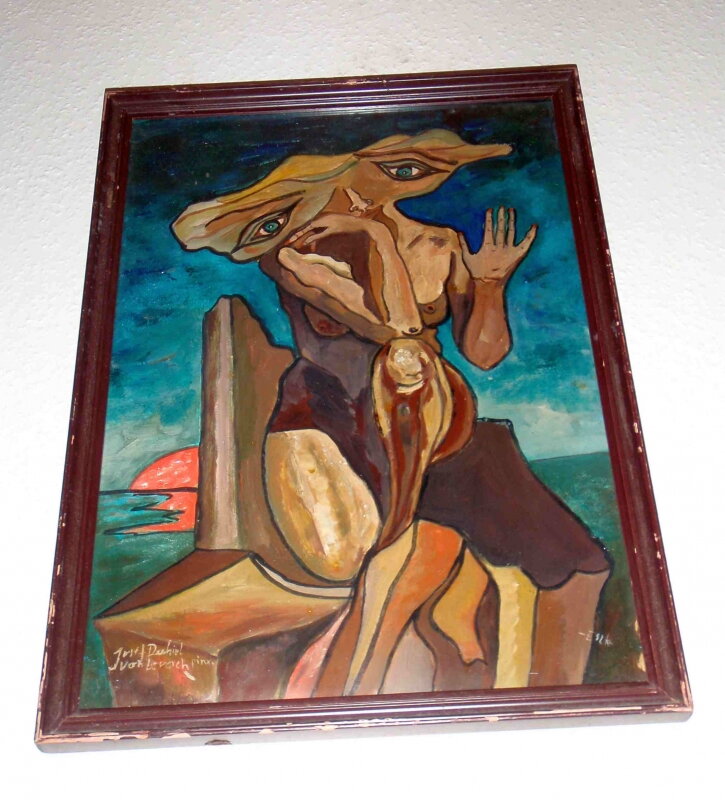 VELMI ZAJÍMAVÝ OBRAZ - PLOCHÁ HLAVA. AUTOREM JE MALÍŘ JOSEF DUBIEL VON LERACH. OBRAZ JE SIGNOVÁN VLEVO DOLE - VIZ. FOTO. ZEZADU OBRAZU JE AUTORSKÝ ŠTÍTEK SE ZÁKLADNÍMI ÚDAJI O DÍLE - VYPLNĚNÉ OD AUTORA, INFORMACE O AUTOROVI, NĚKOLIK RAZÍTEK A EVIDENČNÍ ÚDAJE - VIZ. FOTO.