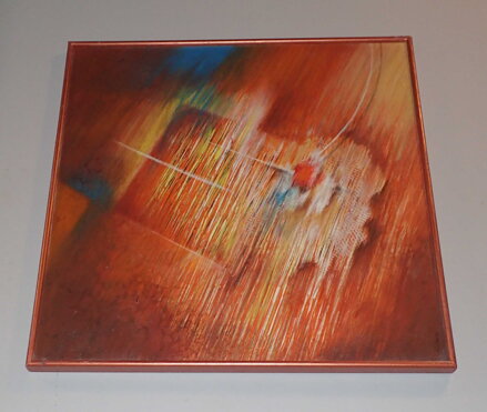Rozměry včetně rámu cca 66 cm x 67 cm, rám je úzký, místy má otluky. Akryl na plátně. Celkový stav - viz foto.