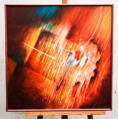Rozměry včetně rámu cca 67 cm x 66 cm, rám je úzký, místy má otluky. Akryl na plátně. Celkový stav - viz foto.