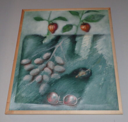 Rozměry včetně rámu úctyhodných cca 80 cm x 70 cm, rám je úzký, místy má otluky. Akryl na plátně. Celkový stav - viz foto.