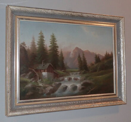 Obraz - Úpa v podkrkonoší. Signován vlevo dole - viz foto. Autorem je vyhledávaný malíř Charles Mayer. Tento malíř dokáže na svých obrazech úžasně zachytit krásu okamžiku. Zezadu obrazu je autorovo razítko - viz foto.