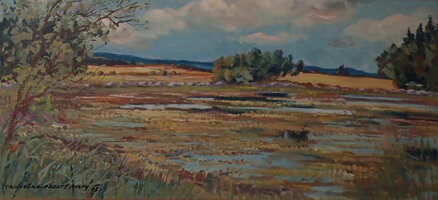 Obraz - Malý Vostézký rybník u Českého Rudolce. Signován a datován vlevo dole - viz foto. Autorem je ceněný a vyhledávaný malíř Evžen Trunečka Prostějovský. Osobitý styl malby, kvalitní líbivé dílo. Zezadu obrazu je autorské razítko, jméno autora, podpis, název díla, technika a rok - vše viz foto.